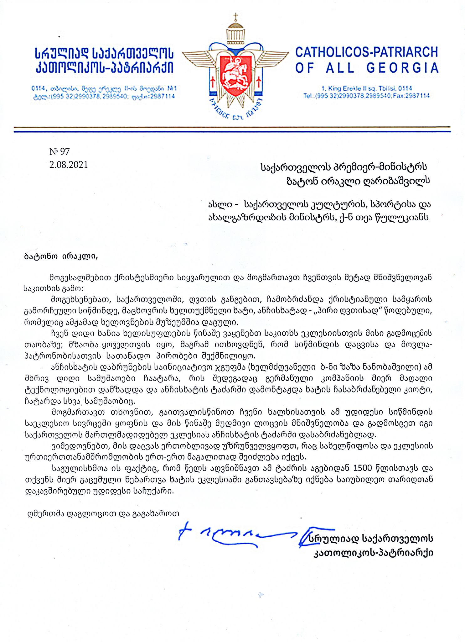 პატრიარქმა მთავრობისგან ანჩისხატი მოითხოვა, აბა, გამოვიცნოთ რას უპასუხებენ?