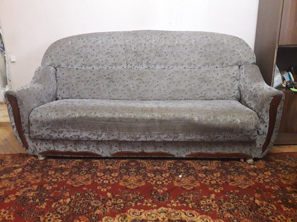 სასწრაფოდ იყიდება ნაჭრის მეორადი სამეული (ტახტი + 2 სავარძელი)
