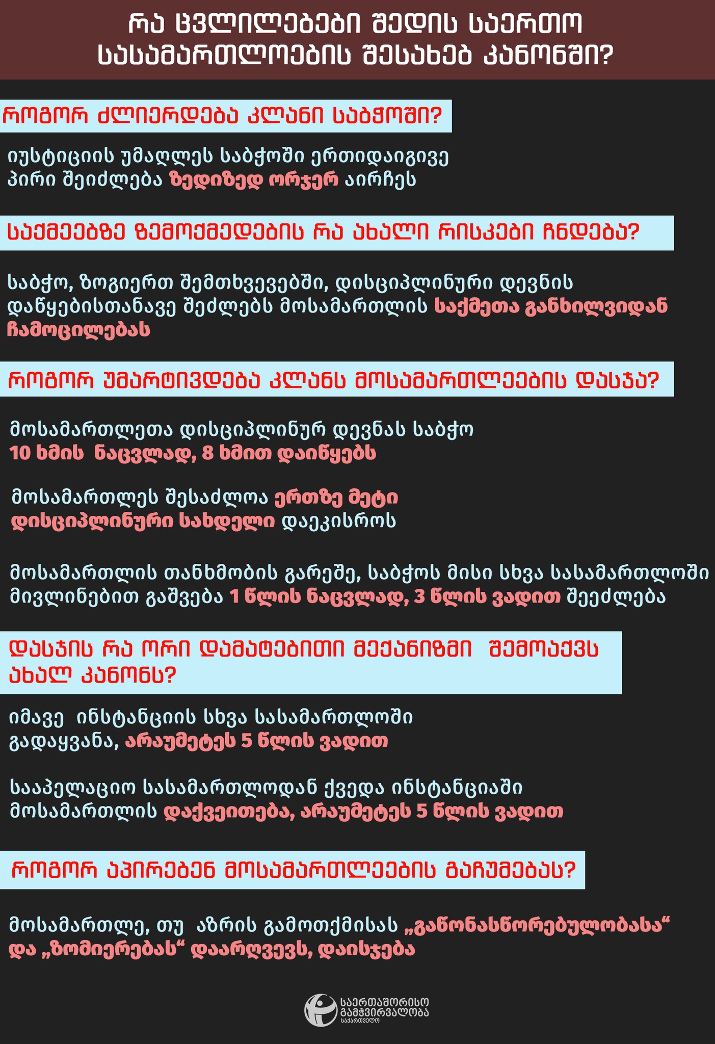 ეს, სავარაუდოდ კონკრეტული დაუმორჩილებელი მოსამართლეების ,,გასაკონტროლებლად" მოიფიქრეს, რომლებიც სულ ათამდე თუ იქნებიან მთელი საქართველოს მასშტაბით