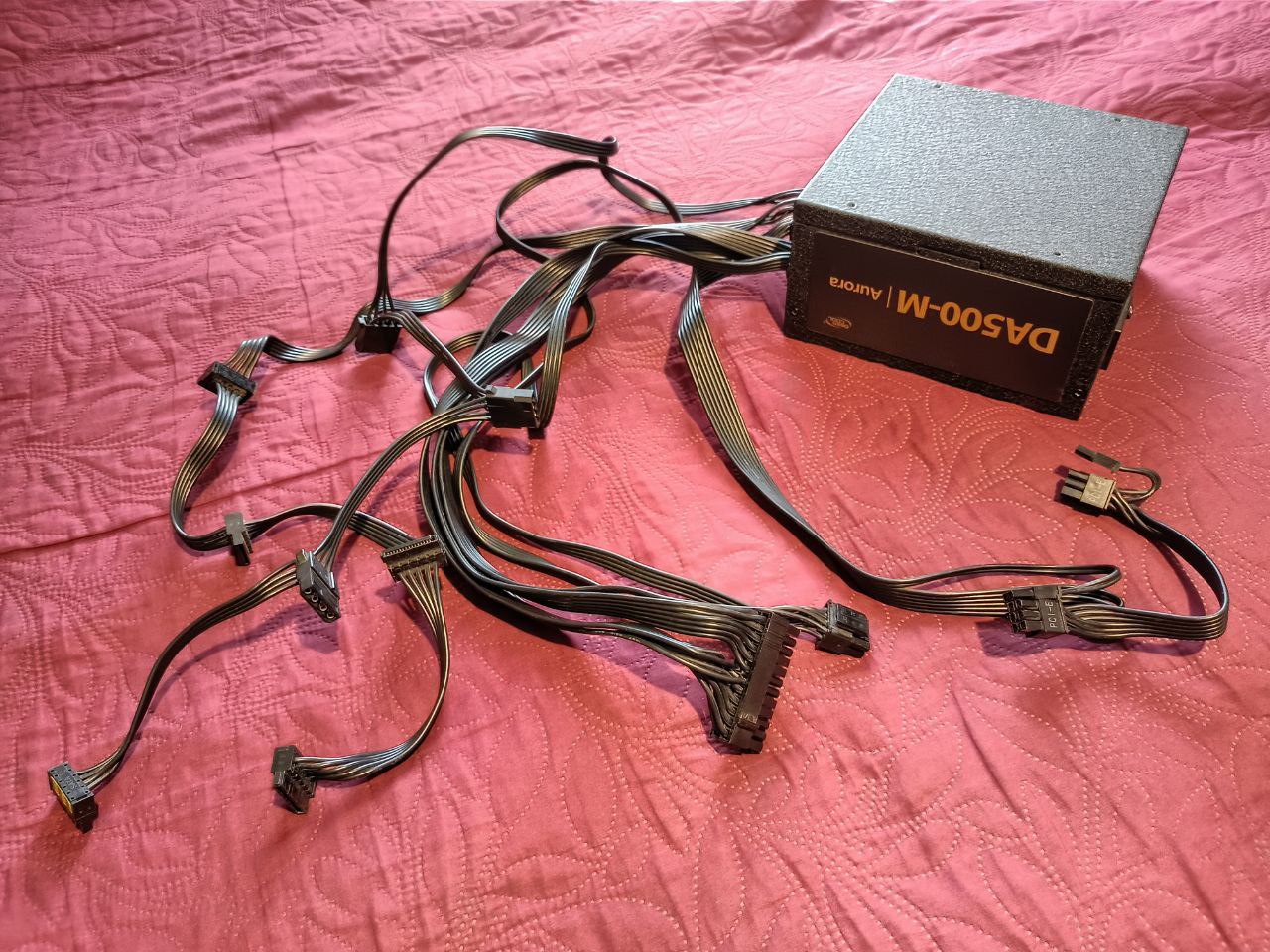 კაბელები : დედაპლატის, პროცესორის 4+4, ერთი ვიდეოს კაბელი 2 ცალი 6+2 კონექტორით, 2 ცალი sata/molex კაბელი