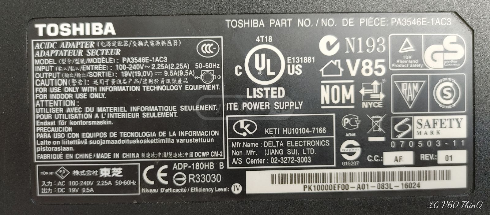 იყიდება ძლიერი, 180 ვატიანი, 9.5 ამპერიანი ლეპტოპის დამტენი