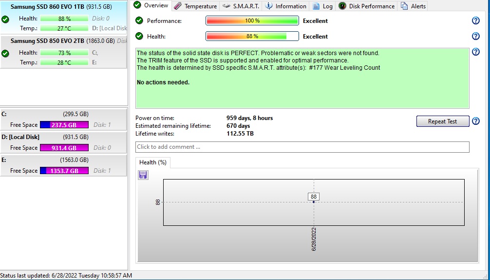 ვყიდი SSD Samsung 860 EVO 1TB, კარგ მდგომარეობაში არანაირი ხარვეზი არ გააჩნია 88%-ნი
