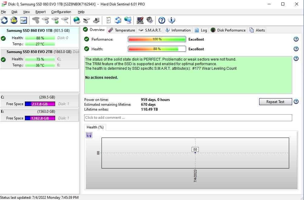 ვყიდი Samsung 860 EVO 1TB, მაქვს 2 ცალი უპრობლემო სუფთა სმარტით, ადგილზე დაგიტესტავთ ისე გაგატანთ