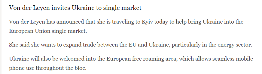 უკრაინა ევროკავშრის ერთიან ბაზარს შეუერთდება, ურსულა ფონ დერ ლაიენი