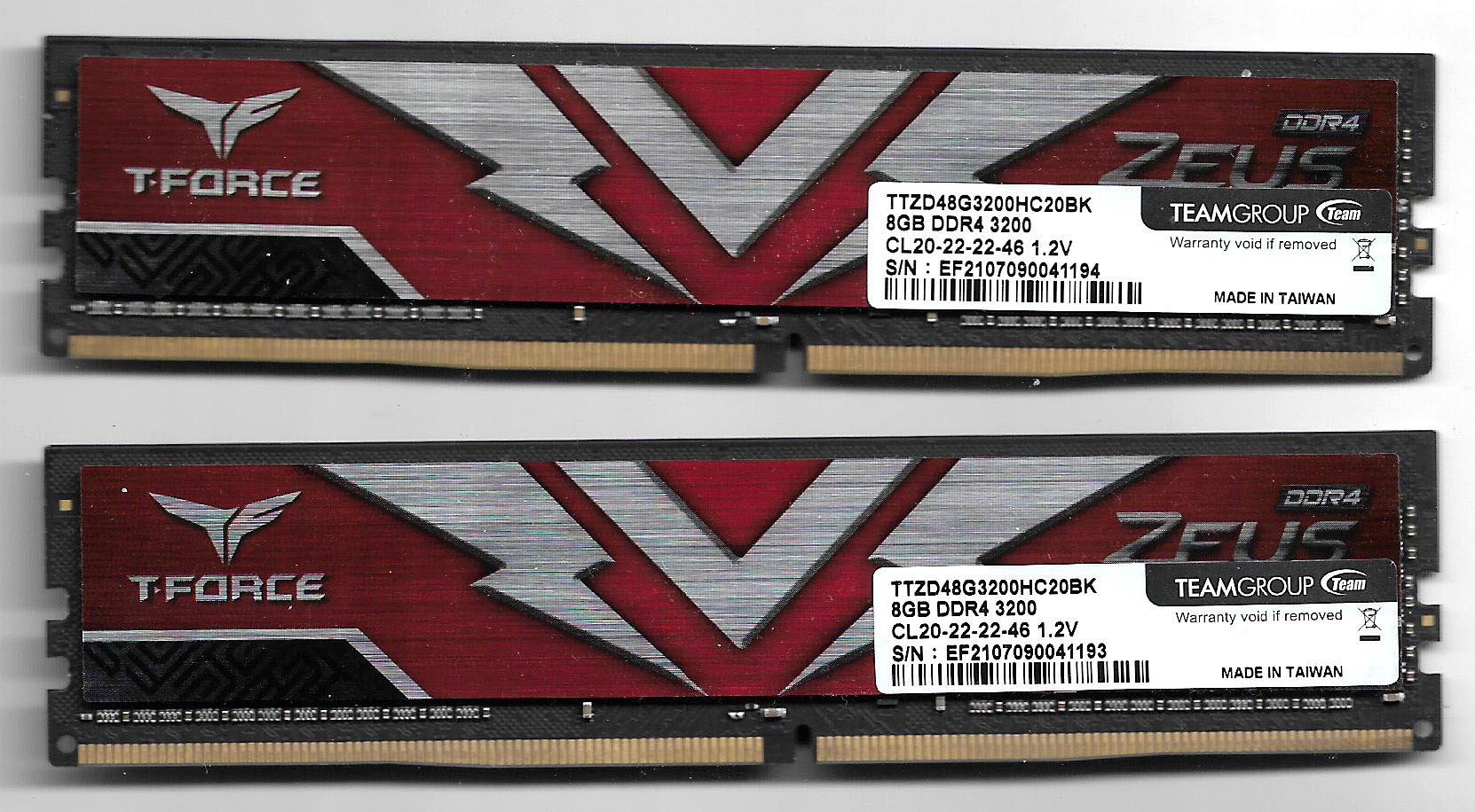 T-Force Zeus 16Gb (2x8Gb) DDR4-3200Mhz. 160 ლარად