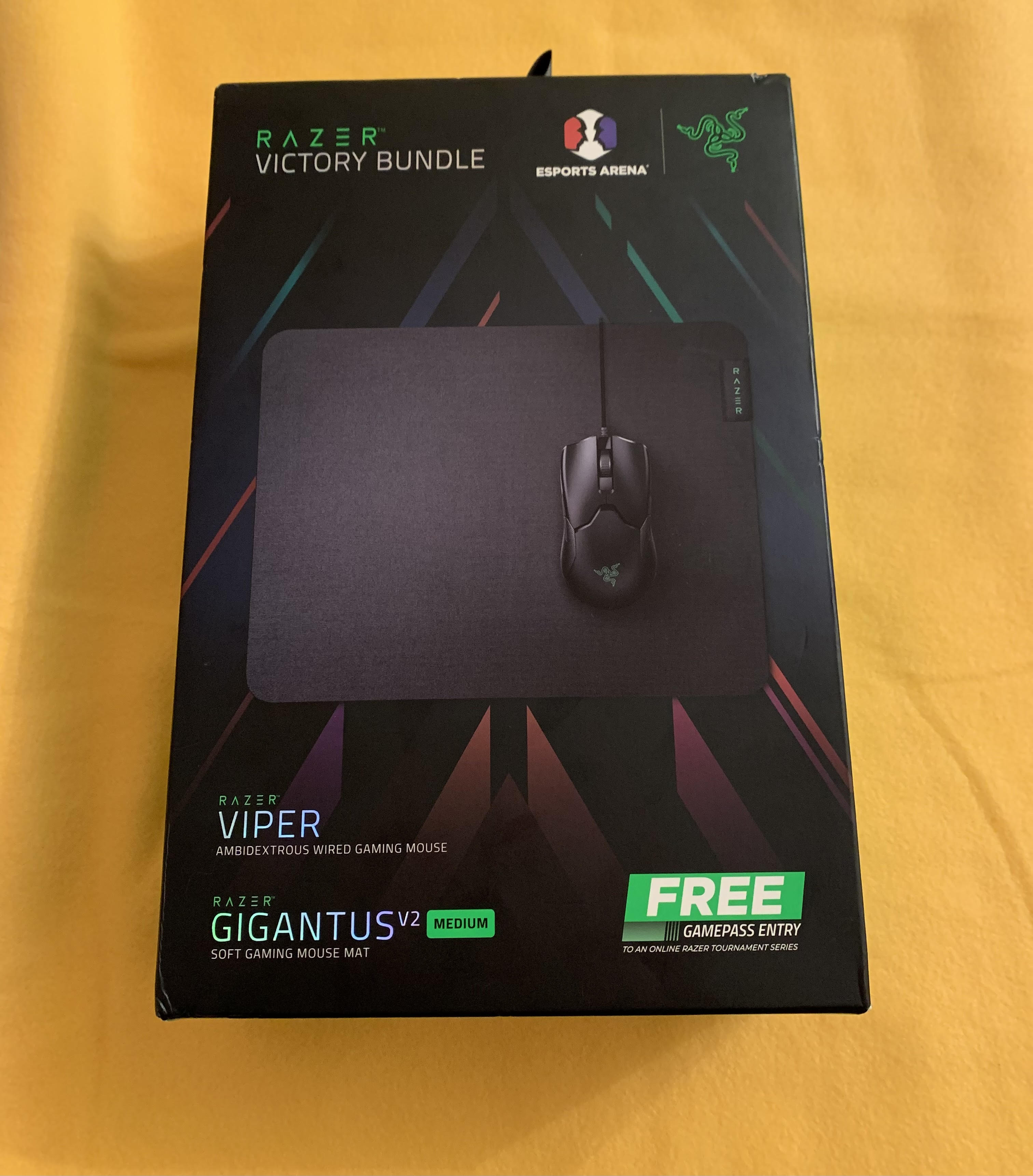 იყიდება ახალი (სასაჩუქრე მდგომარეობაში) Razer-ის Razer Victory Bundle. კომპლექტში შედის razer viper ambidextrous-ის 16 000 DPI იანი და 8 პროგრამირებად ღილაკიანი მაუსი, რომელსაც აქვს RGB განათება და ასევე მედიუმ ზომის Razer GIGANTUS V2 რბილი და კომფორტული მაუს პედი. კომპლექტი იდეალურია გეიმერ ადამიანის საჩუქრისთვის. კრებულში შემავალი ნივთების დამატებითი მახასიათებლებისთვის იხილეთ ლინკები: