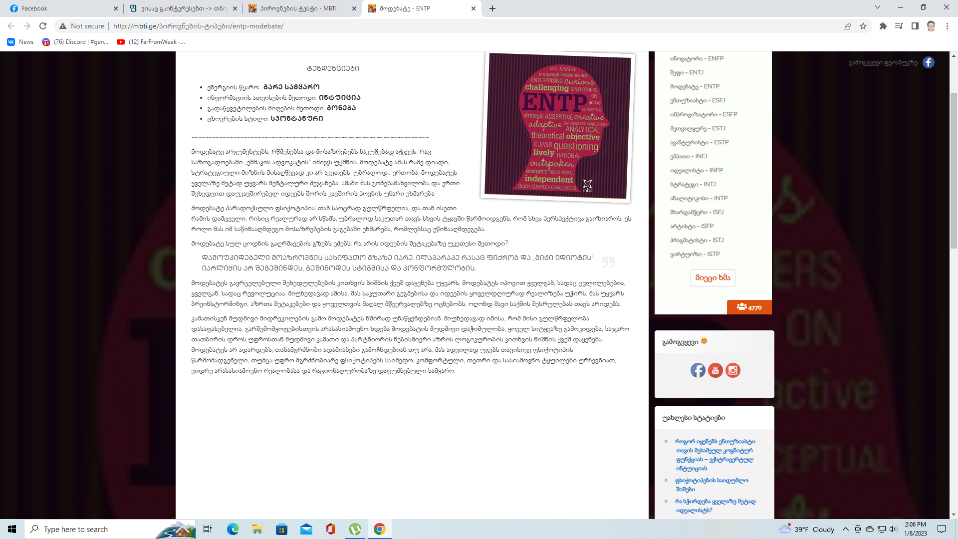 ვისაც გაინტერესებთ, ტესტი/ფსიქოტიპეპი