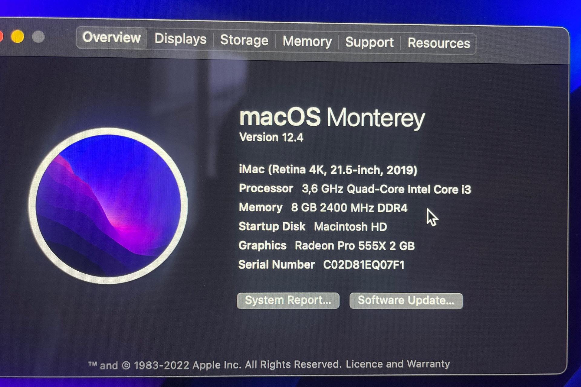 Imac 21,5 inch, retina 4K, 2019, 3,6quad, I3, 8GB