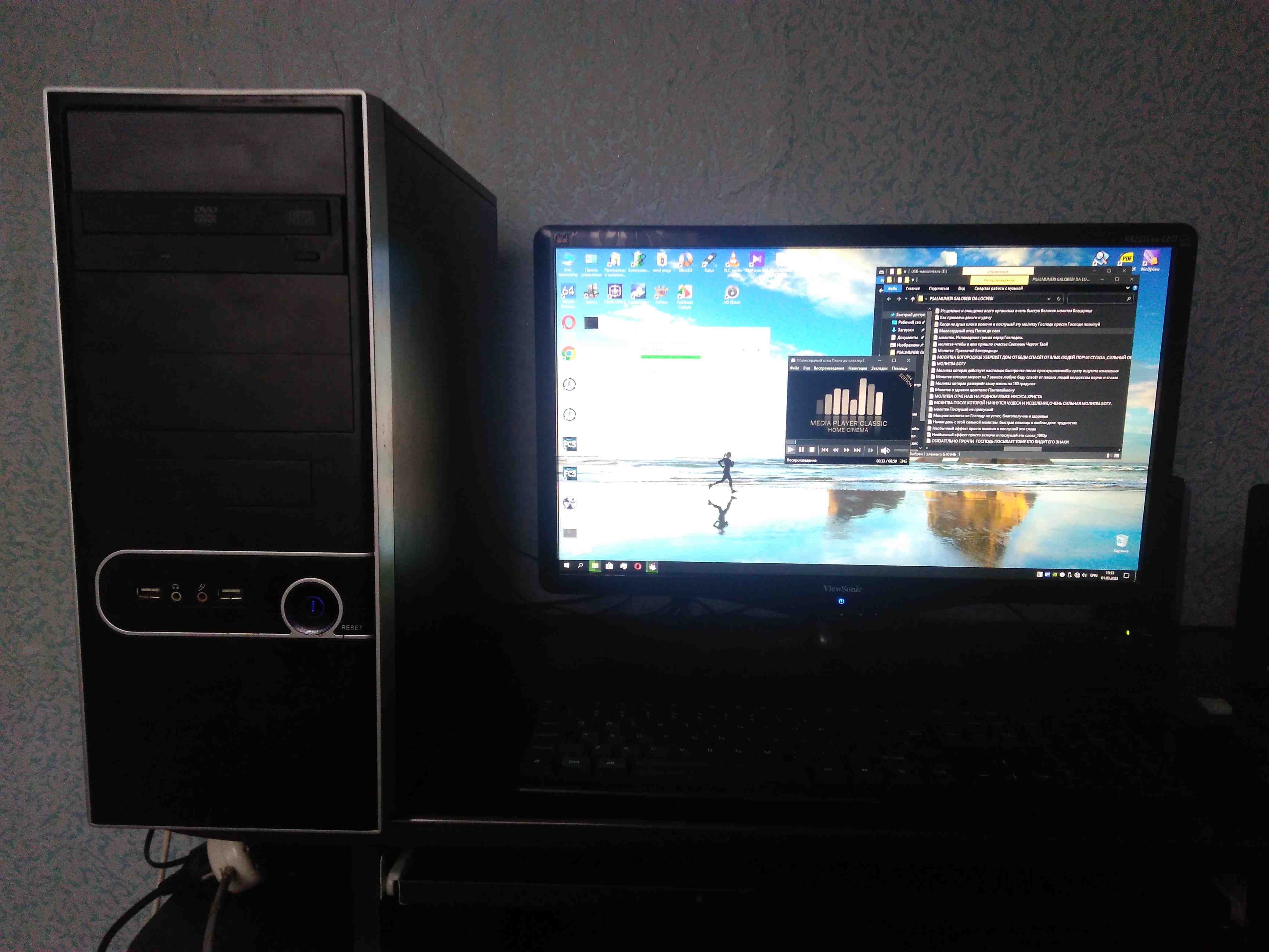 pc-i3 2120/ 8GB RAM რადიატორიანები 2x4gb/ვიდეო ASUS GT 630 2GB/ SSD 128GB KINGSTON ახალი /პლატა BIOSTAR H61MLV2 V8.0/KVEBA 420 WATT 20A 12 ვოლტზე/დივიდი დისკის წამკითხველი და კეისი-მონიტორია 22 დიუმიანი FULL HD 1920-1080P 60hz გაფართოების viewsonic ფირმის