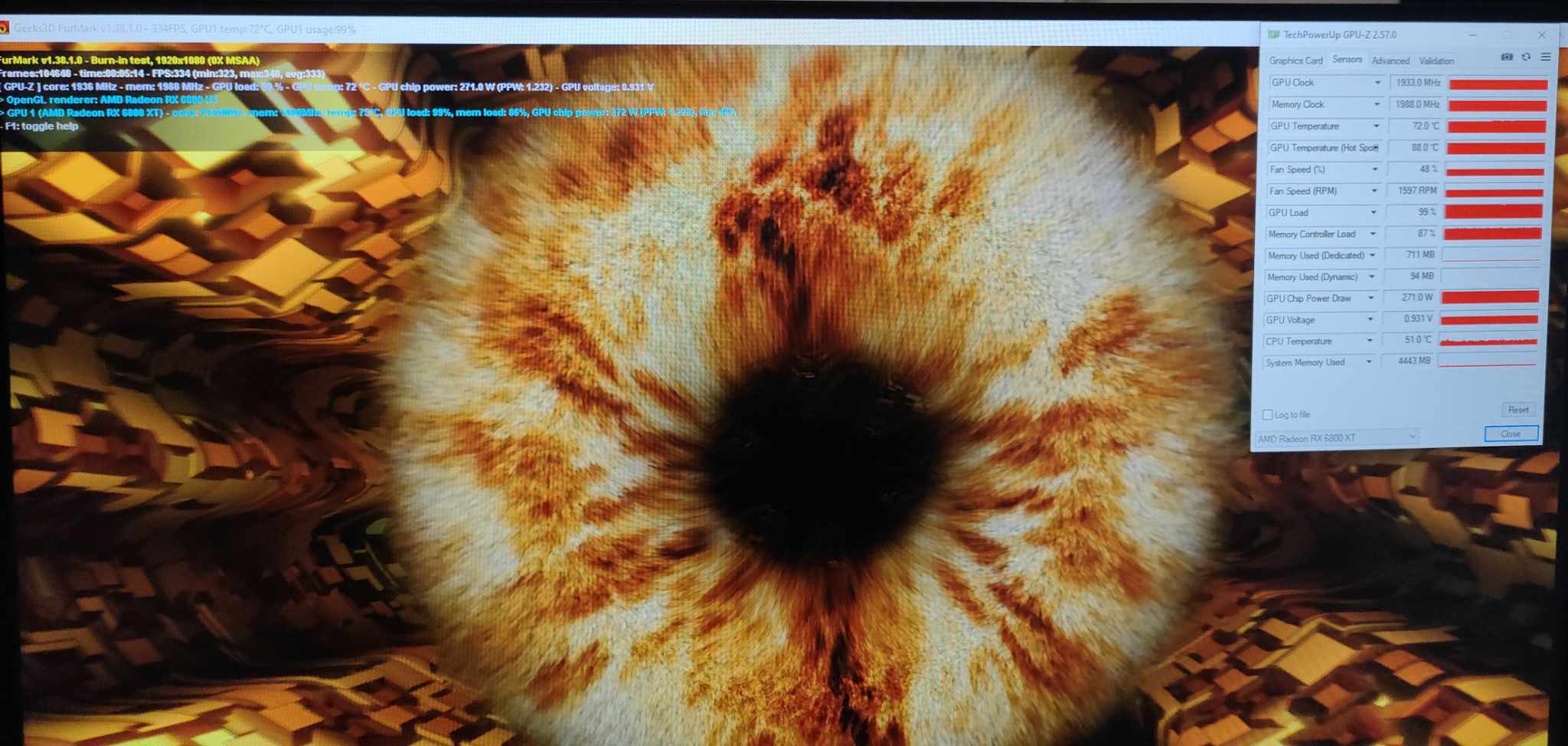 მაქსიმალური ტემპერატურა Furmark 5 წუთში: 72°