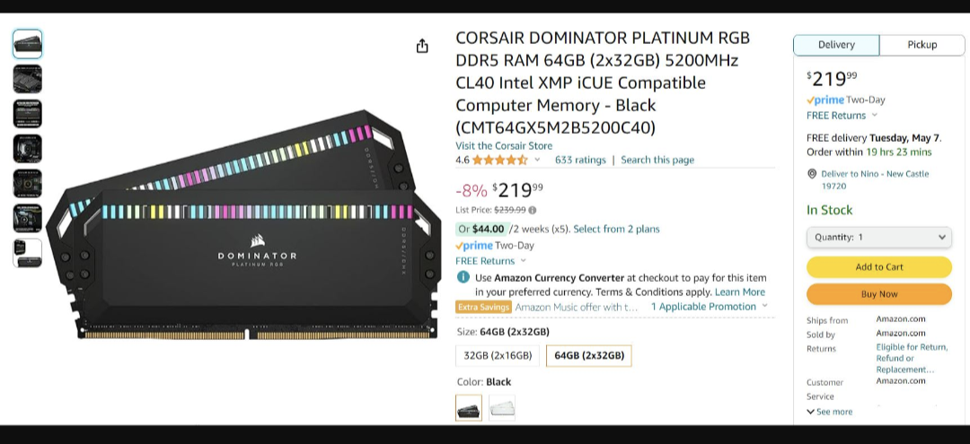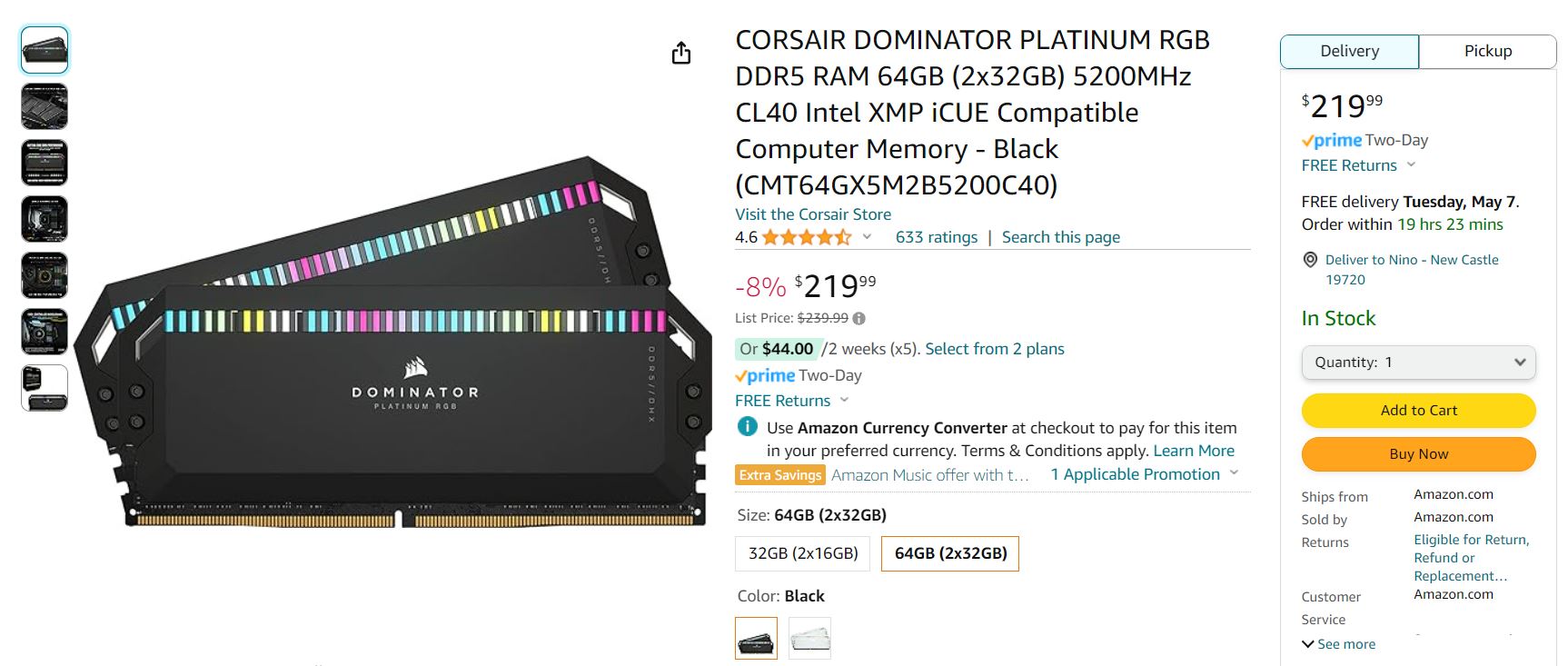 Corsair Dominator Platinum RGB 64GB (2x32GB) DDR5