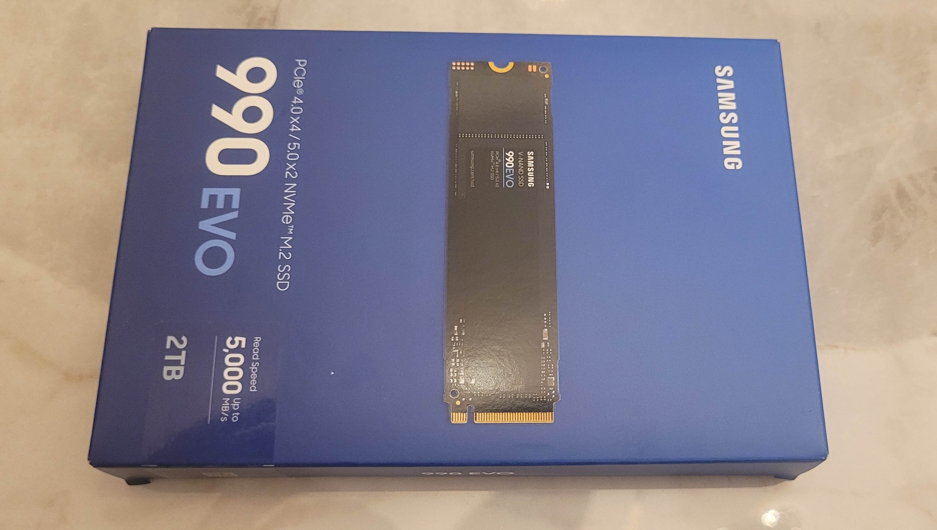 იყიდება სულ ახალი გაუხსნელი Samsung 990 EVO 2TB, Read/Write : Up to 5000/4200 MB/s, | Random 4K Read/Write : 700,000/800,000 IOPS | Interface : PCIe 4.0 x4 / 5.0 x2 NVMe 2.0 | MTBF : 1.5 Million Hours Reliability | TBW : 1200TB. ტელ: 591 26-94-97. ფასი 380 ლარი