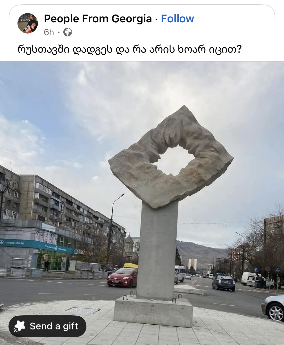 ეტყობა ცალი თვალი მოხუჭა და ჭიტაა დაიძახა ფოტო როცა ნახა მაგ ქანდაკების.