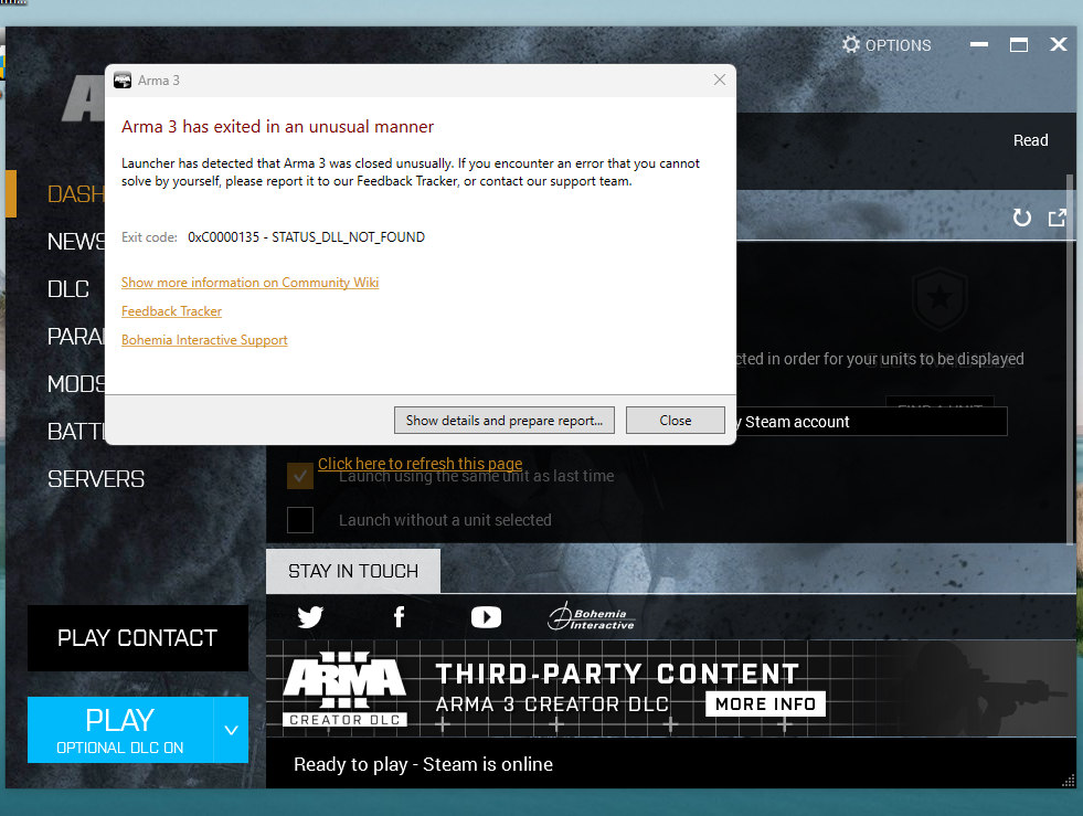 ამას მიწერს არმა 3 და რა უნდა? რა უნდა ჩავიწერო ან რა ფაილი აკლია? საიდან გადმოვწერო თამაშები რომ მსგავსი პრობლემებით არიყოს და არეკლდეს ფაილები
