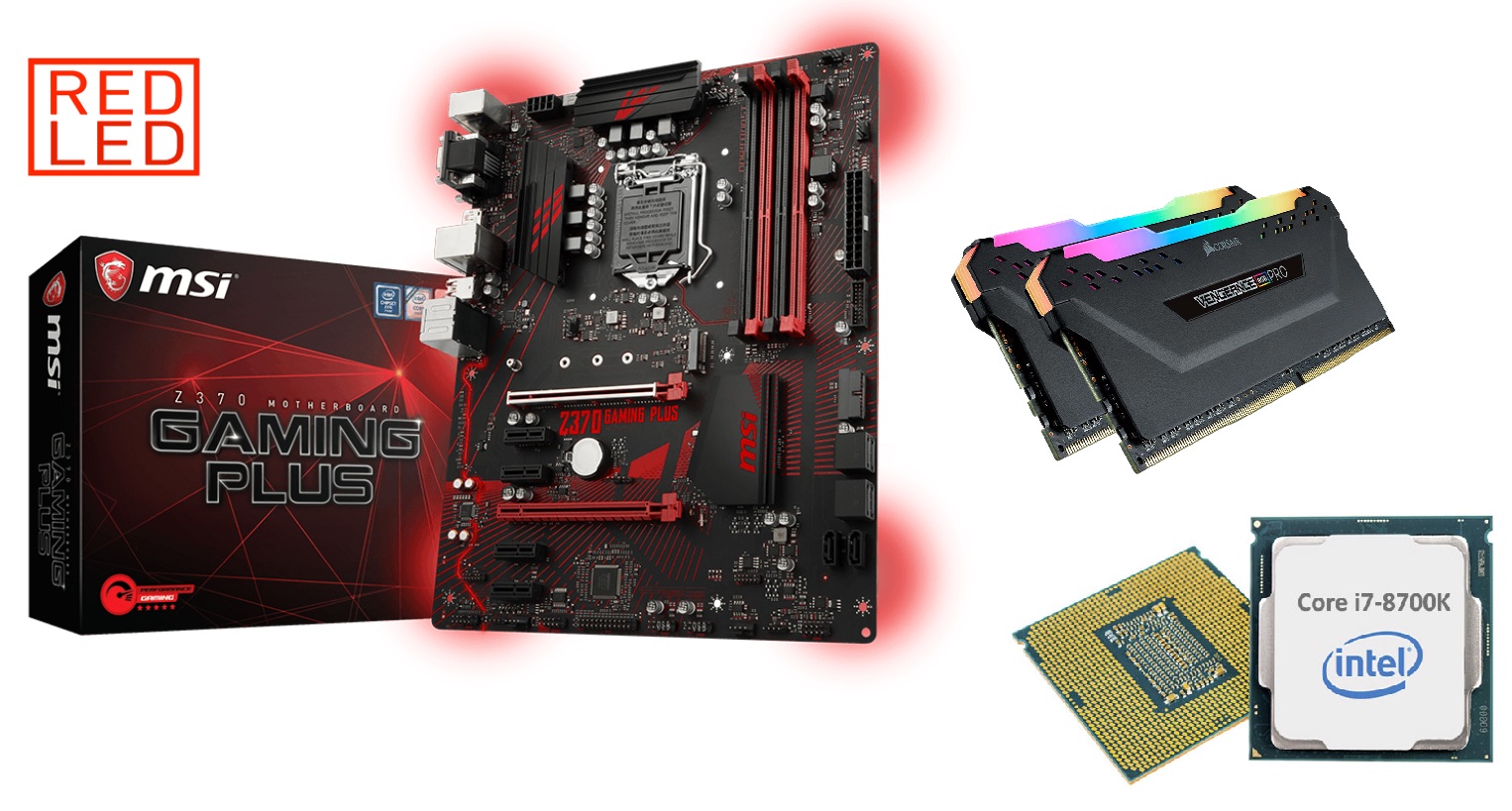 MSI Z370 Gaming PLUS აქვს უკანა პლანკა ( RED LED Light )