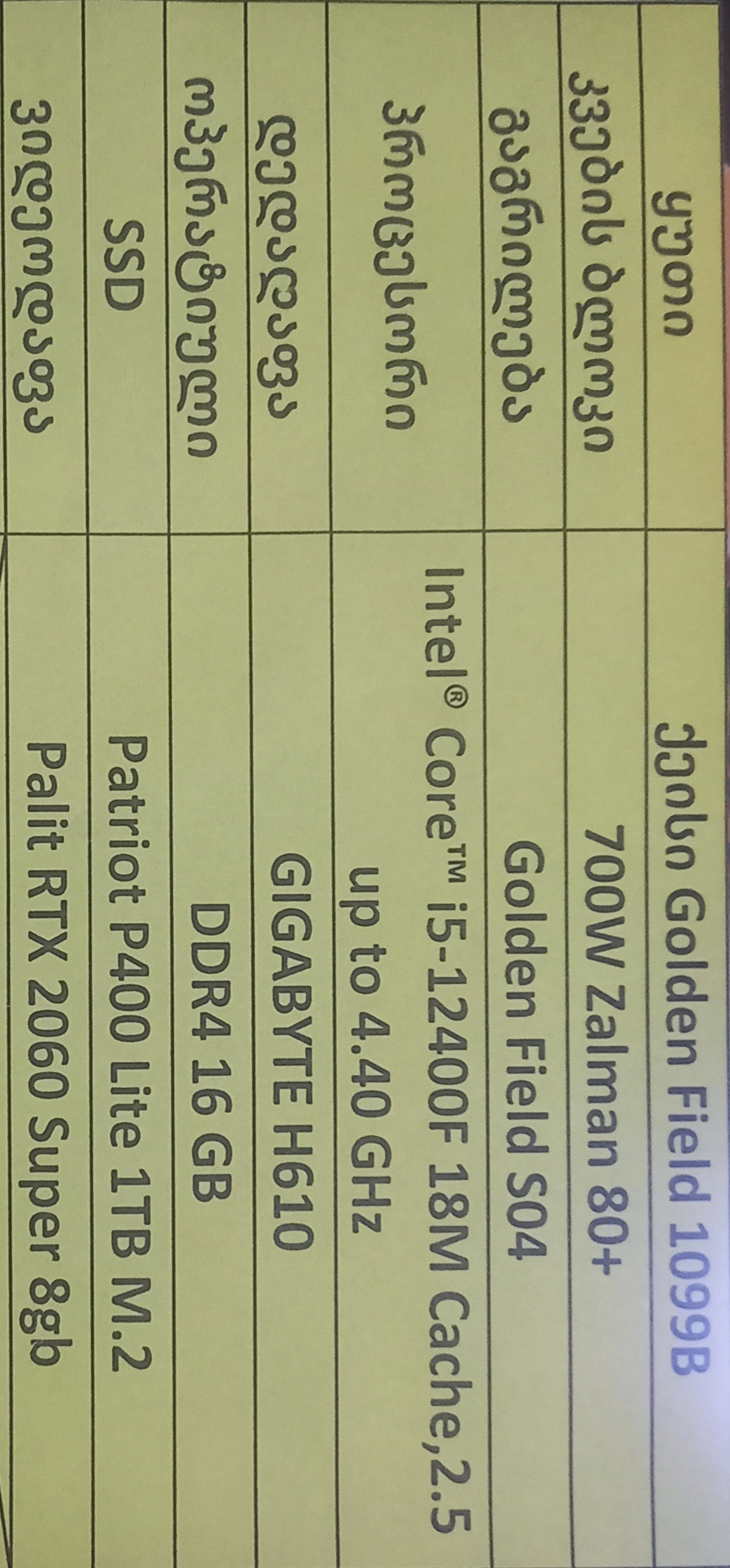 იყიდება ახალი კომპიუტერი ფასი: 1900ლ