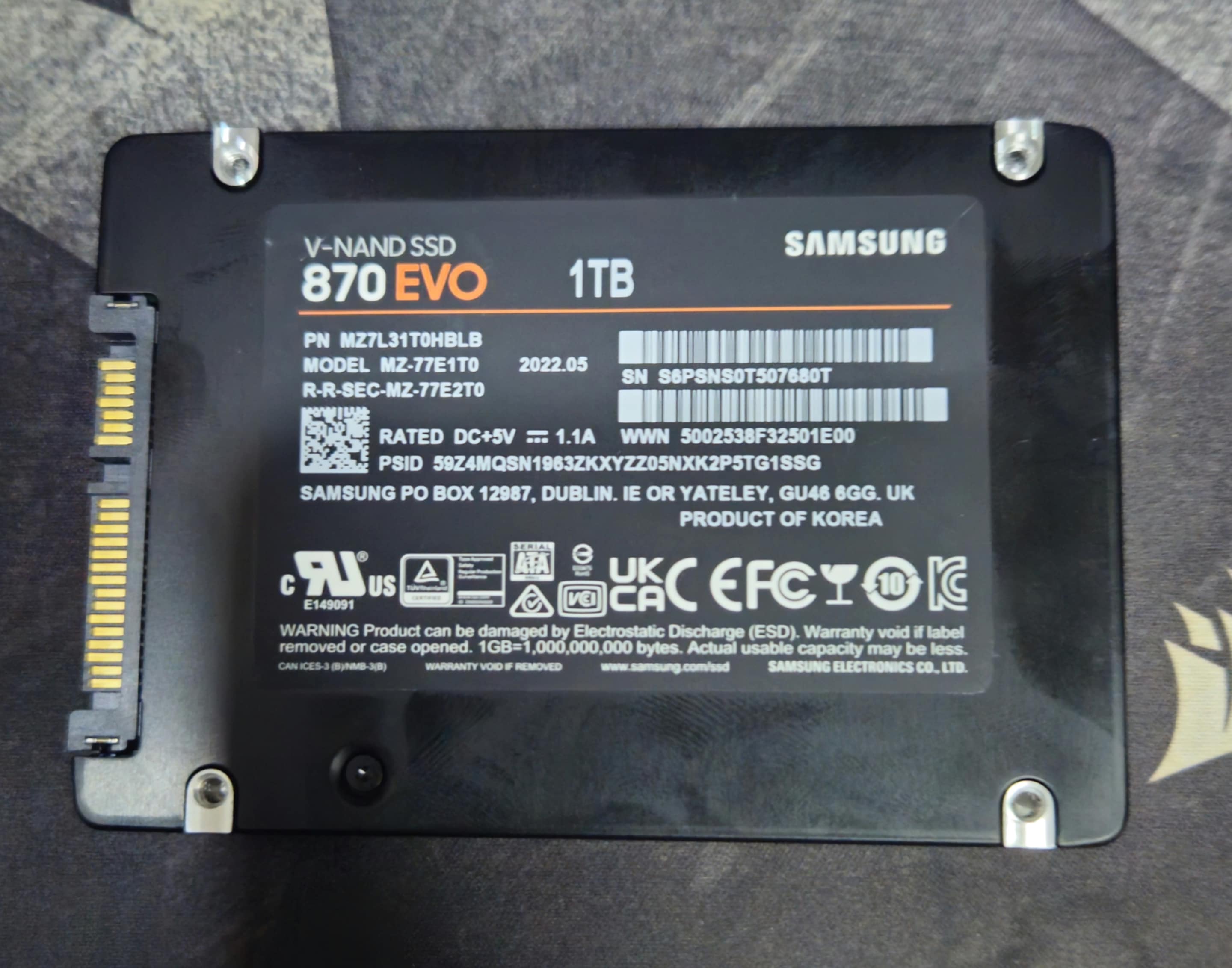 იყიდება Samsung 870 EVO 1TB, Open Box მდგომარეობაში, დაწერილი აქვს სულ 50GB.