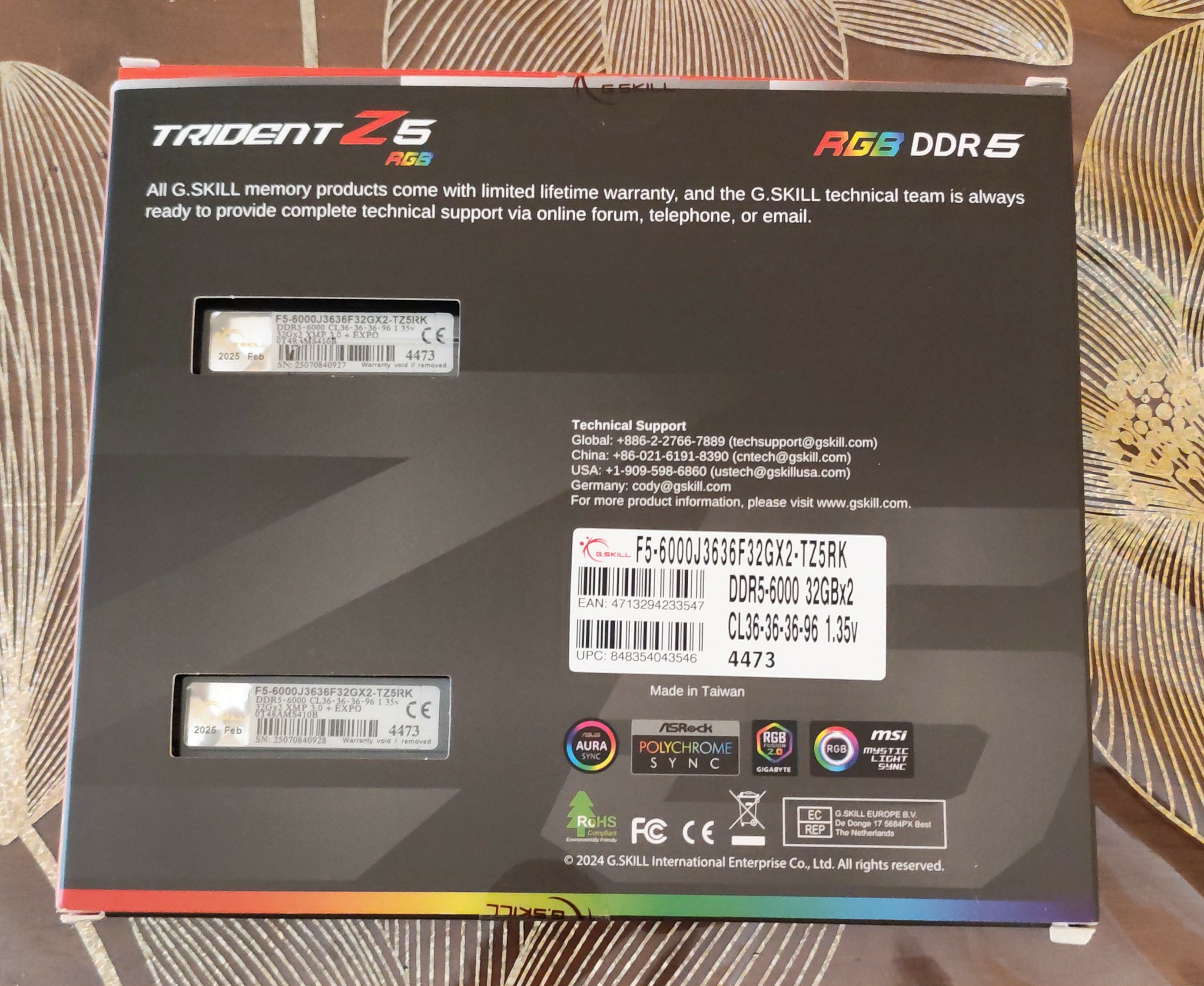 Gskill Trident Z5 RGB 2X32 = 64GB 6000Mhz DDR5